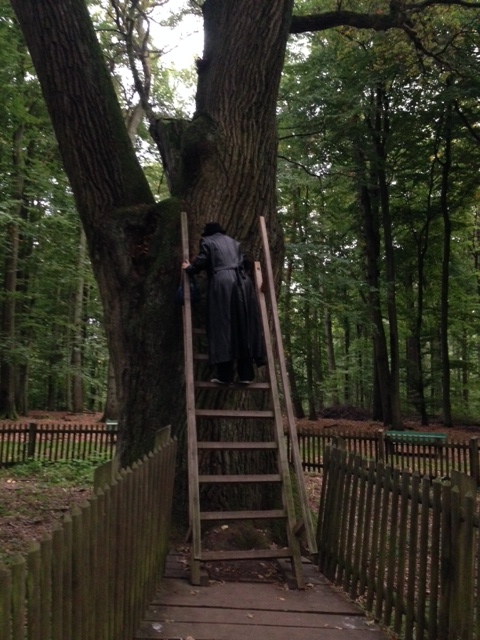 Meine Pfade führten mich an den Zaubersee, an eine Fischhütte, durch Orte in der Umgebung und schließlich zur berühmten Bräutigamseiche , einer mehr als 500 Jahre alten Eiche, die Liebende durch ihren Zauber zusammenführen kann. Die Eichen sind dem Gott Thor heilig, und so war ein Abstecher zu ihr unumgänglich. Nur ein winziger Wegweiser führt zu ihr hin und Thor selbst musste mit dem Finger darauf weisen, denn ansonsten hätte ich ihn unter Garantie nicht bemerkt.