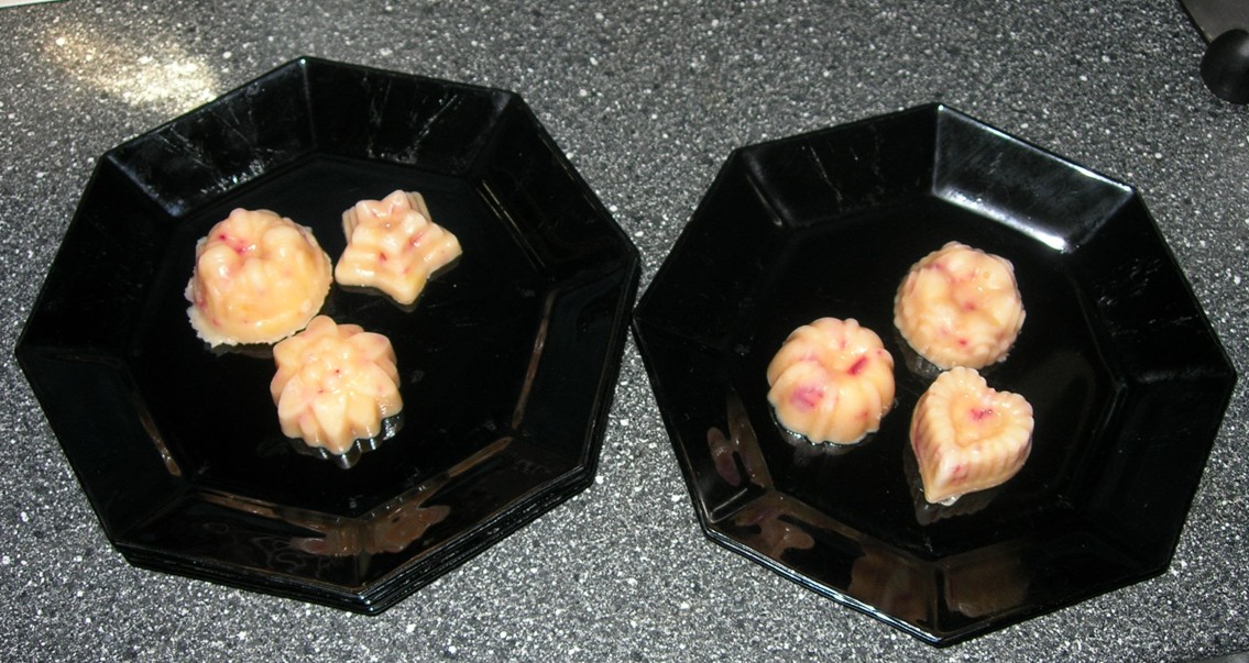 Man nehme die Zutaten, packe sie in den Mixer, mixe sie zusammen und fülle sie in Pralinen- oder Eiswürfelformen. Nun kommt alles in die Tiefkühlung und wird mindestens vier Stunden gekühlt. Dann entnehmen und genießen!