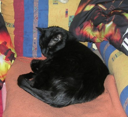 Hexenkater Iggy genießt die Abende gemütlich auf dem Sofa.