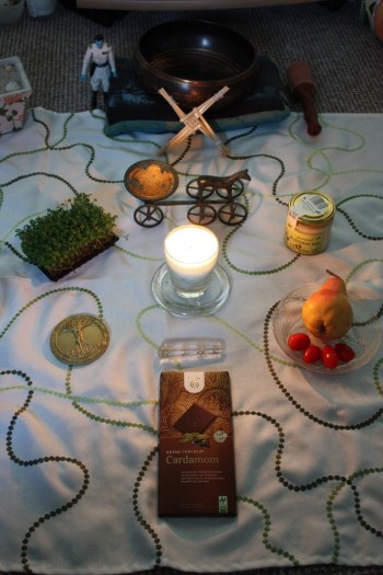 Obgleich ich meinen Altar am Boden – wegen meines erblindeten Katers – direkt weg räumen musste, ließ ich meine Gemeinschaftskerze bis 21.00 Uhr brennen. Ein Licht für alle, die später dazu kamen. Von nun an werde ich sie täglich entzünden und dabei meditieren und entspannen. Wenn Interesse besteht können wir hierfür auch eine feste Zeit vereinbaren, falls jemand mit machen möchte.