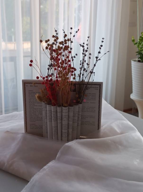 Altarschmuck aus einem aufgearbeiteten, alten Tarotbuch.