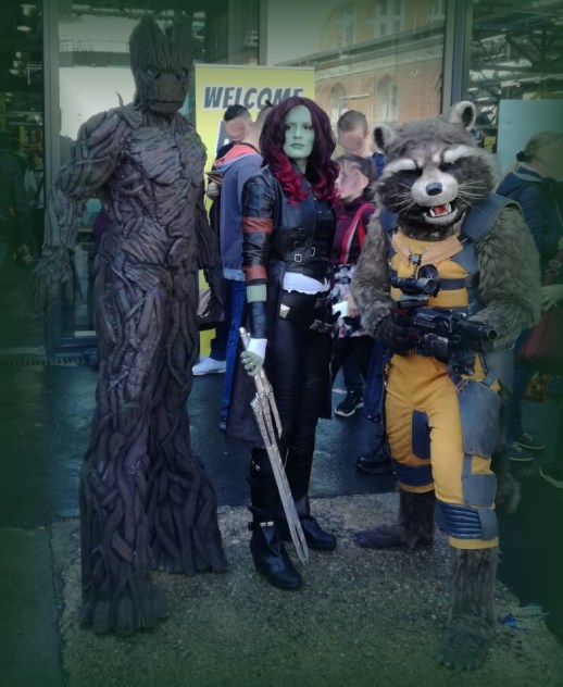 Auch die Guardians of the Galaxy waren angereist: Von links – Groot, Gamorra, Rocket
