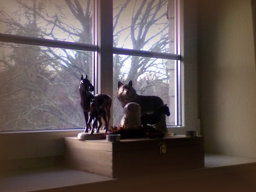 Dann habe ich ’sogenannte‘ Altäre gesehen, die ausschließlich Tieren gewidmet waren. Hier wurde Krafttieren, Totemtieren oder Schutztieren Raum geschaffen. Die Tiere wurden in Form von Skulpturen, Spielzeugtieren oder Bildern dargestellt. Die Altäre waren wohl gepflegt und entsprachen optisch und in der Handhabung dem, was offenkundig das Internet-Lexikon als Altar begreifen würde. Nur: Gottheiten wurden und werden hier nicht verehrt.