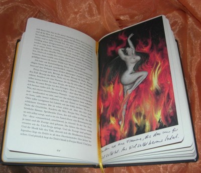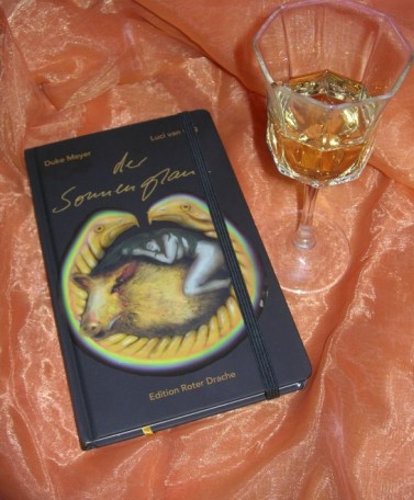 Schon die Aufmachung des Buches ist einfach traumhaft: Das Cover hält was der Titel ankündigt, denn es ist einfach ein glänzendes Covermotiv. Und auch beim ersten Durchblättern verspricht die schön gestaltete Publikation einiges. Luci van Org hat die Geschichte von Duke Meyer nämlich in ansprechenden Bildern illustriert. Das Buch ist ein Hardcover, die Ecken sind abgerundet und es ist möglich das Buch mit einem Band zu verschließen, zugleich gibt es auch ein goldenes eingebundenes Lesezeichen-Band. Die Verarbeitung ist sehr hochwertig, wie es sich für ein göttliches Buch gehört 😉