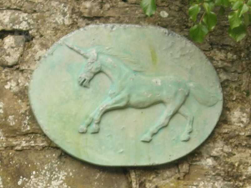 Hier sind wir schon oft unterwegs gewesen. Und dennoch passiert es uns, dass wir im Wald unsere Abfahrt verpassen. Kein Wunder, denn die Pfade hier sind nicht zu vergleichen mit unseren Straßen. Es sind schichte Feldwege, zuweilen umwuchert. Und mit einem Male stehen wir mit dem Wagen vor einem grünen Einhorn. Es galoppiert über die Hofwand des weiten Anwesens, in dessen Hof wir gelandet sind. Wir sind bei der Lady dieser Ländereien gelandet. Neben eines Einhornes hat sie Hunde, die uns fröhlich begrüßten und sich an unserem Wendemanöver erfreuen. Mir aber hätte klar sein müssen: Ein Einhorn am Morgen sorgt für veränderte Pläne zum Tage! Zuweilen betritt man die Anderswelt, ohne es direkt zu merken…