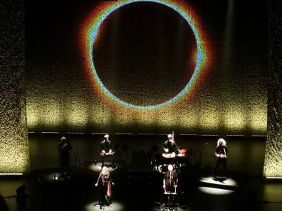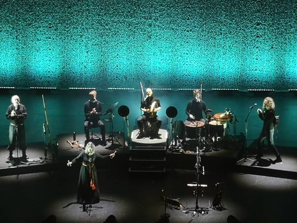 Am Donnerstag ging es also zum Theater am Potsdamer Platz, das – meinem Eindruck zur Folge – ausverkauft war. Wir hatten sehr gute Plätze mit exquisitem Blick auf die Bühne und so stand dem Konzertgenuss nichts mehr entgegen. Und ein Genuss war das Konzert! Mir gefiel das gesamte Ambiente ausgezeichnet. Die Band präsentierte sich natürlich, ohne aufwändige Kostümierungen oder Showeffekte. Statt dessen wurde die Musik in den Vordergrund gestellt. Besonders ansprechend fand ich die geschickten Beleuchtungselemente, die schlicht aber effektiv eingesetzt wurden. So wurden die entsprechenden Runenlieder oft mit zu den Runen passenden Lichtfarben beleuchtet.