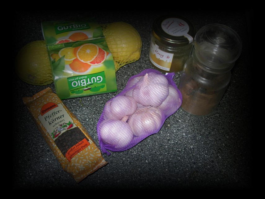Der Trank muss im Kühlschrank aufbewahrt werden. Er stärkt nicht nur das Immunsystem, sondern vor allem auch Leber und Schilddrüse. Wer mag kann ihn zwei Wochen lang einnehmen, dann eine Woche pausieren und wieder zwei Wochen einnehmen. Wenn diese Kur zweimal im Jahr gemacht wird, so schützt sie vor Erkältungskrankheiten und grippalen Infekten. Die Kur kann zu jeder Jahreszeit gemacht werden. Die Zutaten für den Trank sollten unbedingt frisch sein, dann braucht man sich keine Sorgen zu machen bezüglich des Knoblauchs, es wird keinen Mundgeruch geben! Dafür aber zieht während der Zubereitung ein lieblicher Duft durch die ganze Wohnung 😉